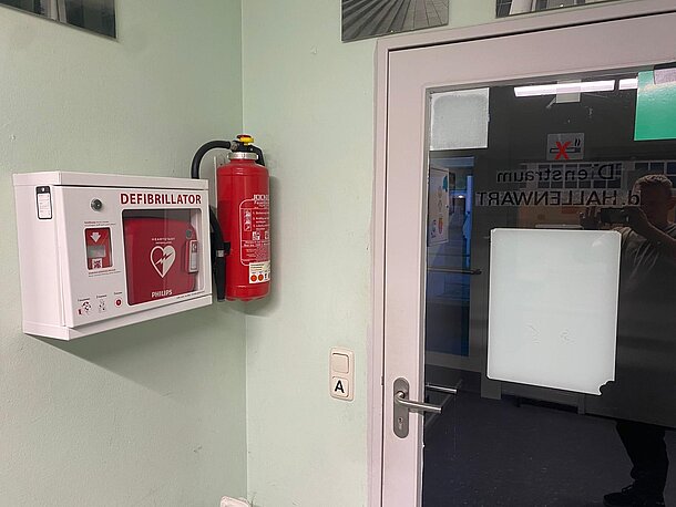 Beschreibung des AED-Standortes: | Bezirksamt Steglitz-Zehlendorf von Berlin, Sportamt, Platzwartbüro (innenliegend in der Halle) |