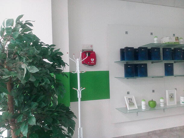 | Beschreibung des AED-Standortes: | Neben der Theke/Rezeption |