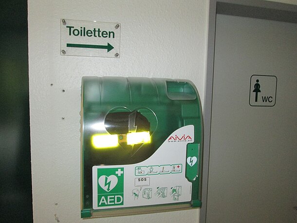 | Beschreibung des AED-Standortes: | Haupteingang beim Parkplatz, Neben der Damentoilette |