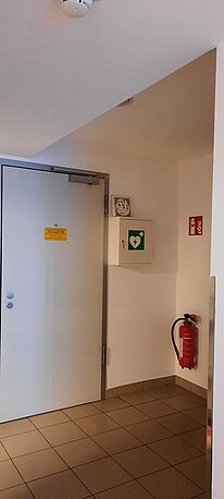 | Beschreibung des AED-Standortes: | Erdgeschoss, General Aviation; rechts neben Tür |