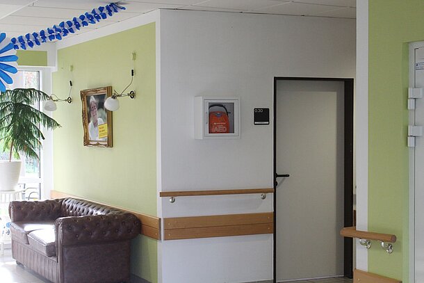 | Beschreibung des AED-Standortes: | Erdgeschoss (EG), rechts vor dem Eingang zum Wohnbereich 1 |