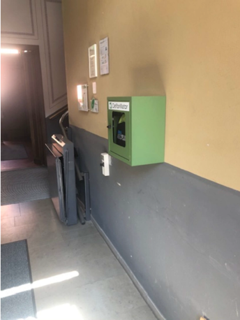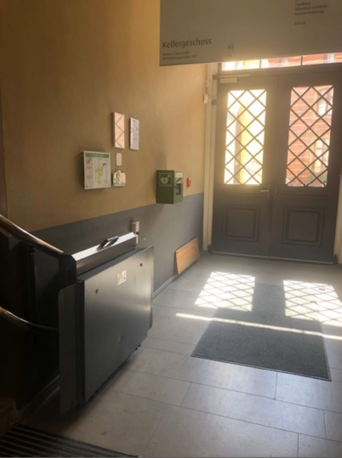 | Beschreibung des AED-Standortes: | Erdgeschoss, linke Seite im Durchgang zum Hof |