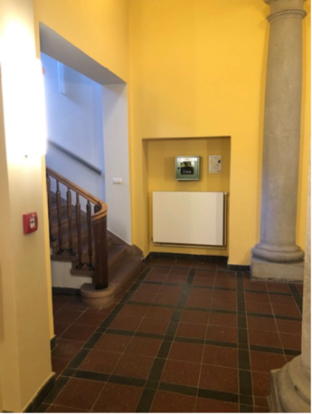 | Beschreibung des AED-Standortes: | Erste Obergeschoss, vor dem Treppenaufgang |