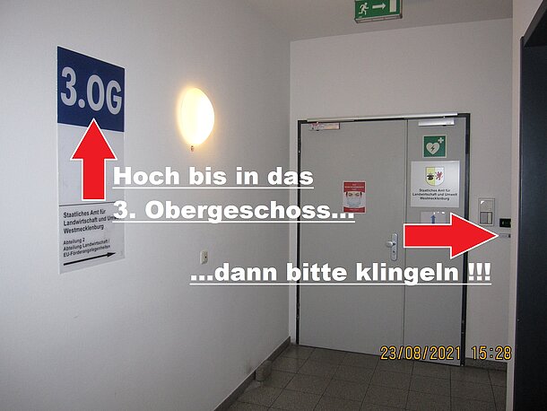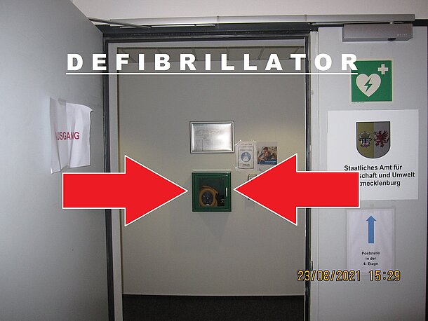 | Beschreibung des AED-Standortes: | 3. OG, rechter Eingang, Stahltür, klingeln erforderlich! |