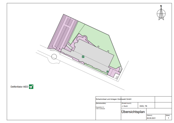 | Beschreibung des AED-Standortes: | im Schwimmmeisterraum |
