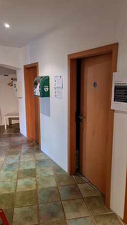 | Beschreibung des AED-Standortes: | Eingang Ecke Grubenstraße AED im Erdgeschoss, im Veranstaltungsraum |
