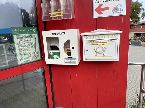 | Beschreibung des AED-Standortes: | Eingangstür Rezeption |