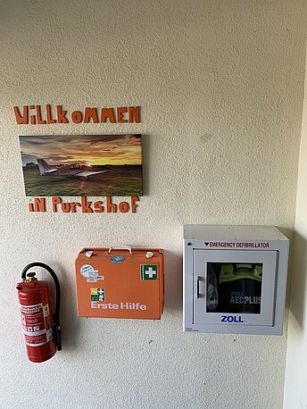 | Beschreibung des AED-Standortes: | Vereinsheim, Eingangsbereich linke Seite |