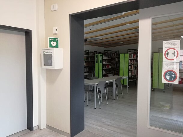 | Beschreibung des AED-Standortes: | EG, Flur vor der Bibliothek |
