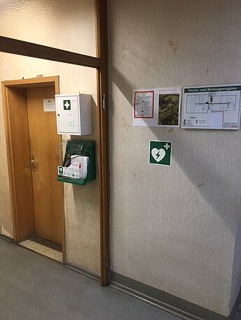 | Beschreibung des AED-Standortes: | EG, Treppenhaus, Flur, Abteilung Bauamt, Umweltamt |