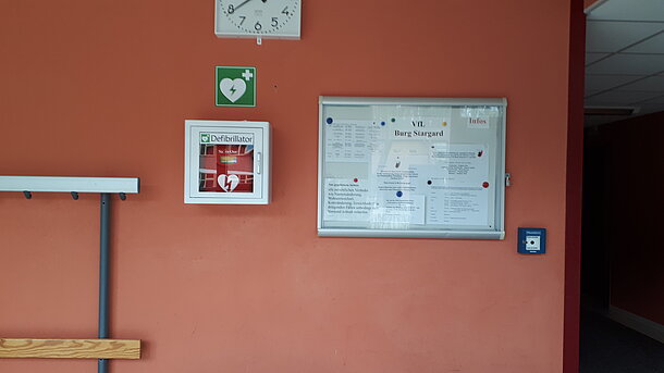 | Beschreibung des AED-Standortes: | Eingangsbereich, Umkleide |