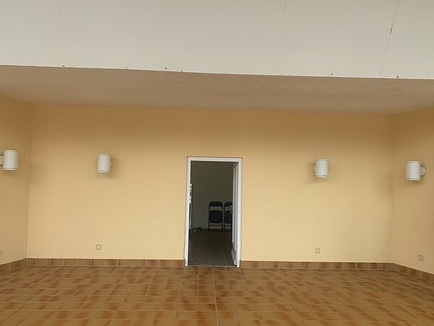 | Beschreibung des AED-Standortes: | Raum hinter der Bühne |