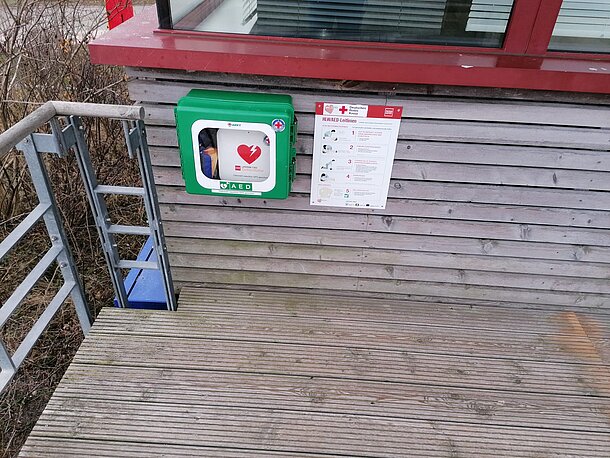 | Beschreibung des AED-Standortes: | Rettungsturm Wasserwacht - blaue Hauptwache |