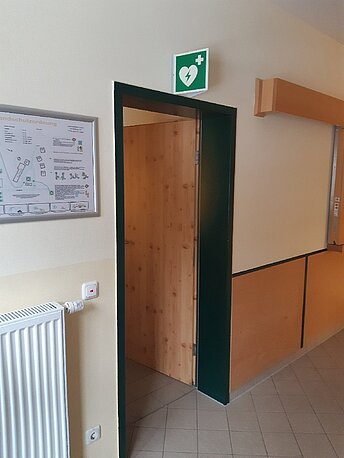 | Beschreibung des AED-Standortes: | Haupteingang Verwaltungsgebäude, Eingangsbereich 1. Etage |