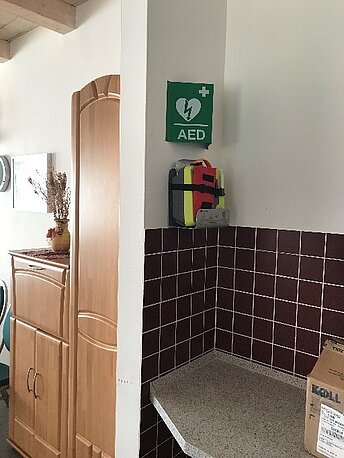 | Beschreibung des AED-Standortes: | Dorfgemeinschaftshaus Küche, im Eingangsbereich |
