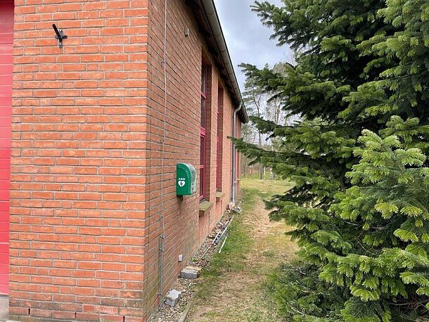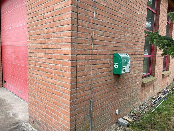 | Beschreibung des AED-Standortes: | Außen an der Wand |