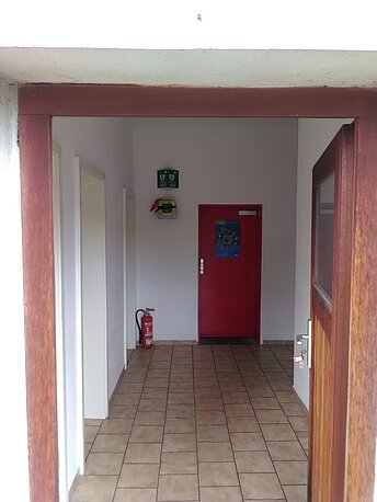 | Beschreibung des AED-Standortes: | Gebäudeeingang, auf dem Flur geradeaus |