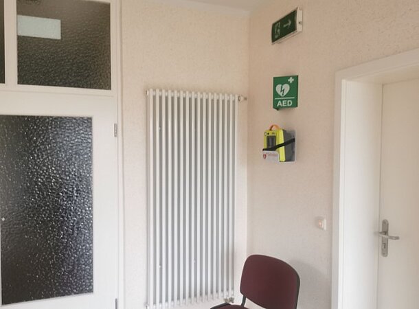 | Beschreibung des AED-Standortes: | Haupteingang, Flur rechts |