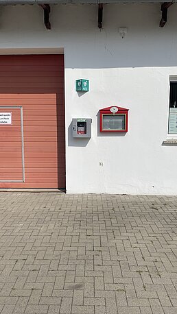 | Beschreibung des AED-Standortes: | Eingang Feuerwehr, außenseitig |