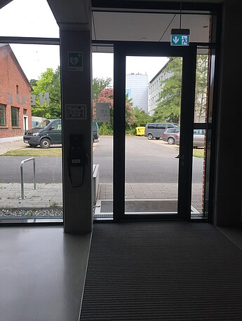 | Beschreibung des AED-Standortes: | Neue Saatzucht (verklinkertes Gebäude) im Erdgeschoss/Eingangsbereich |