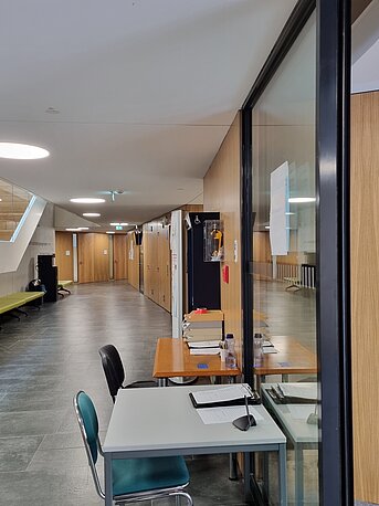 | Beschreibung des AED-Standortes: | Etage: 0, Erdgeschoss, auf dem Flur, rechts neben dem Kassenautomaten |