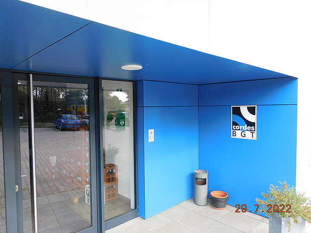 | Beschreibung des AED-Standortes: | Haupteingang, hinter der Tür im Innenbereich |