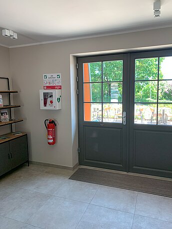 | Beschreibung des AED-Standortes: | Eingang Haupthaus (WE25/26) |