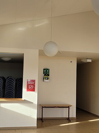 | Beschreibung des AED-Standortes: | Foyer rechts neben Garderobenbereich |