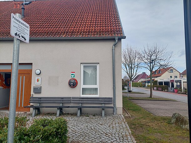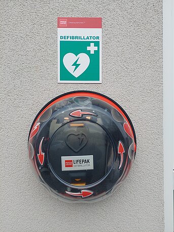 | Beschreibung des AED-Standortes: | 3 Meter rechts neben dem Haupteingang |