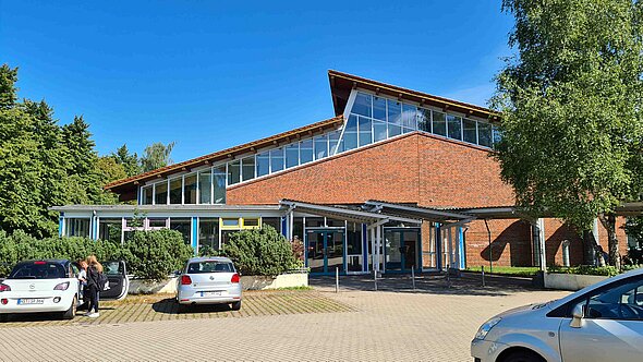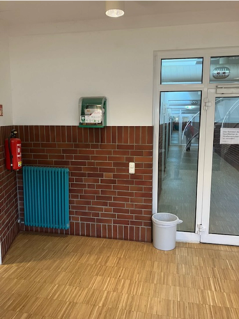 | Beschreibung des AED-Standortes: | Haupteingang im Untergeschoss, gegenüber der Treppe an der Wand |