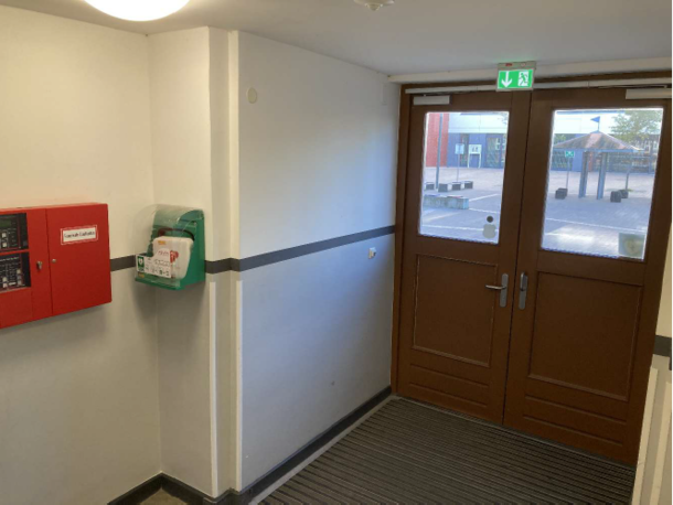 | Beschreibung des AED-Standortes: | Altbau 2. Haupteingang vom Haupttor, Erdgeschoss rechts hinter der Haupteingangstür |