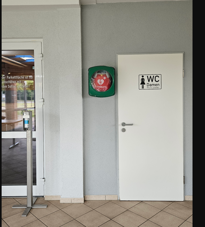 | Beschreibung des AED-Standortes: | Foyer ( Wandbefestigung), nur bei Veranstaltungen geöffnet. |